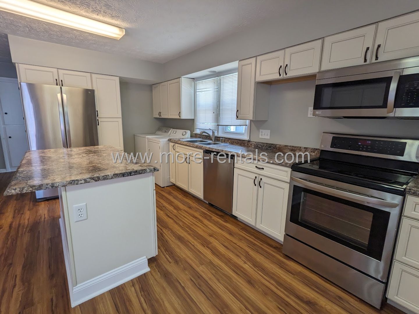 This home features 2 nice-sized bedrooms and a cook's dream kitchen with microwave, side-by-side refrigerator and washer/dryer. The home also offers central air, large wood deck, and a 2 car garage. It has wood floors luxury vinyl plank throughout the home.